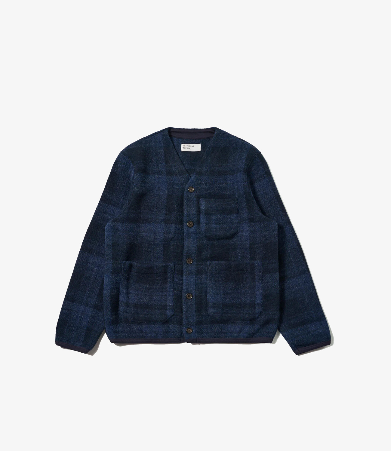 The Universal Works Wool Blend Cardigan is a signature layering piece designed for everyday wear. Cut to a regular fit, it features a curved v-neck collar, a five-button front, and soft cotton rib-bound cuffs and hem for comfort and durability. With three outer patch pockets and an additional inside pocket, this cardigan balances utility with a clean, understated design. Crafted from a warm and breathable wool–acrylic blend, it delivers both softness and resilience, making it an ideal staple for layering through the seasons.